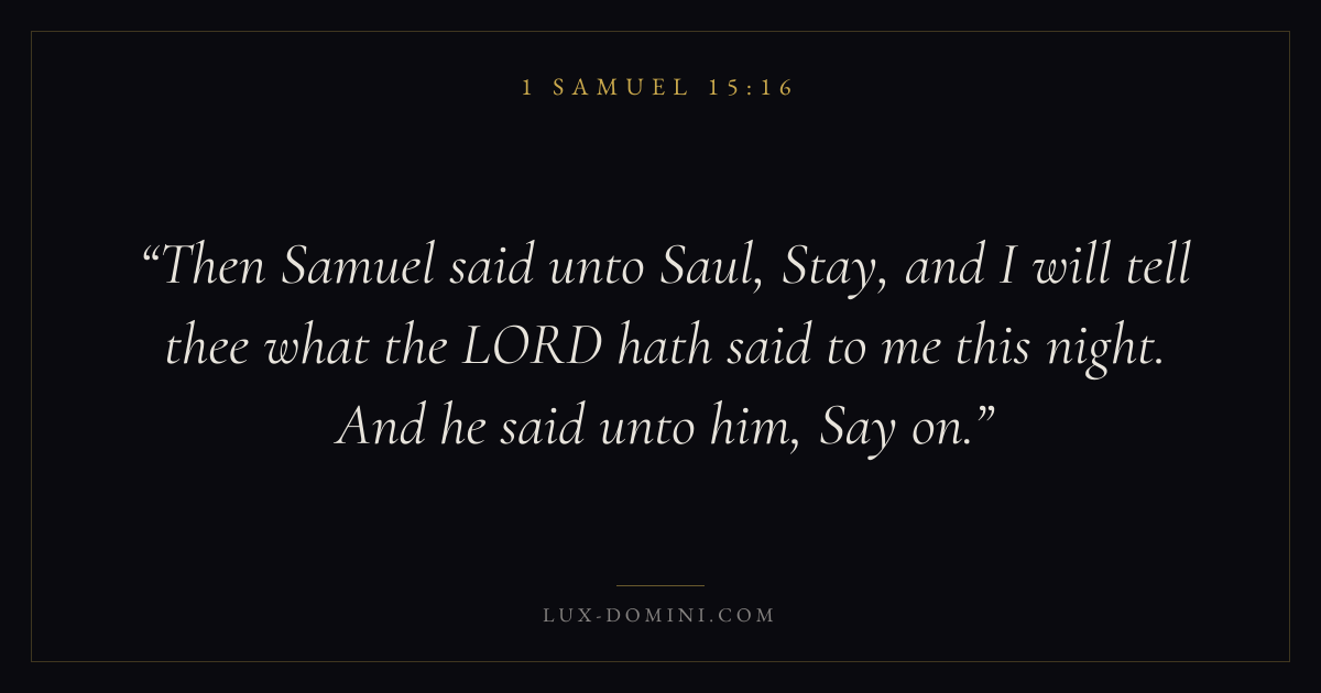 Then Samuel said unto Saul, Stay, and I will tell thee what the LORD hath said to me this night. And he said unto him, Say on.