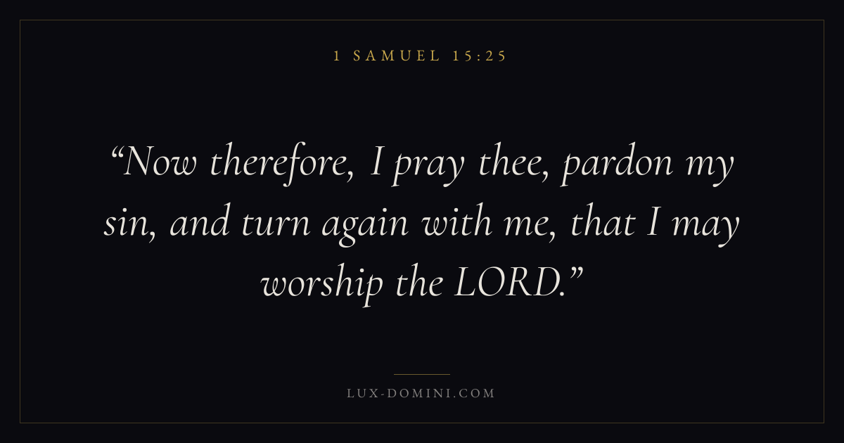 Now therefore, I pray thee, pardon my sin, and turn again with me, that I may worship the LORD.