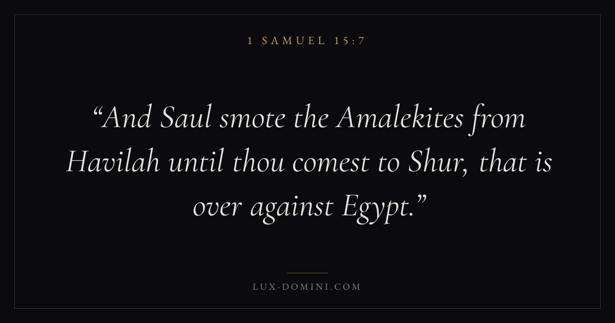 And Saul smote the Amalekites from Havilah until thou comest to Shur, that is over against Egypt.