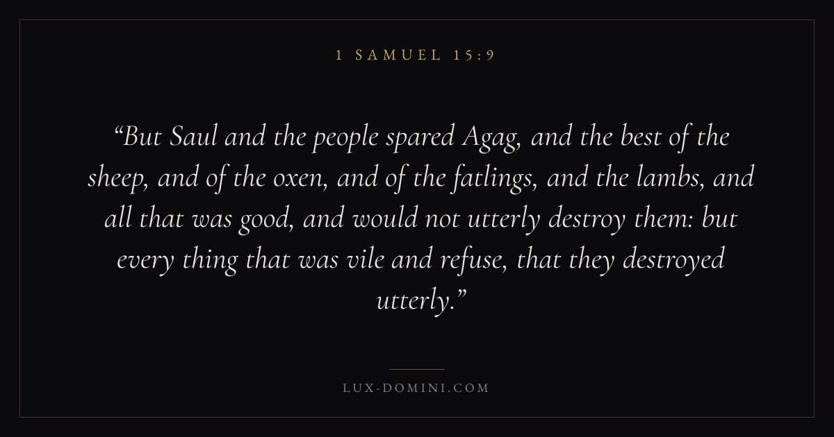 But Saul and the people spared Agag, and the best of the sheep, and of the oxen, and of the fatlings, and the lambs, and all that was good, and would not utterly destroy them: but every thing that was vile and refuse, that they destroyed utterly.
