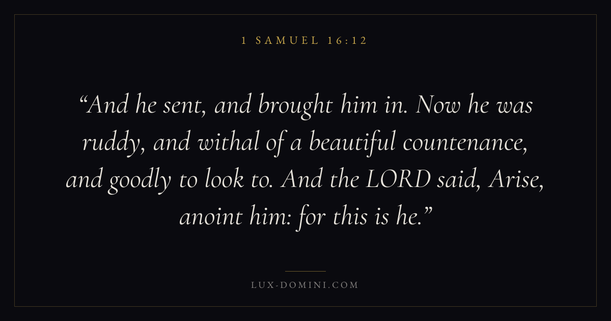And he sent, and brought him in. Now he was ruddy, and withal of a beautiful countenance, and goodly to look to. And the LORD said, Arise, anoint him: for this is he.