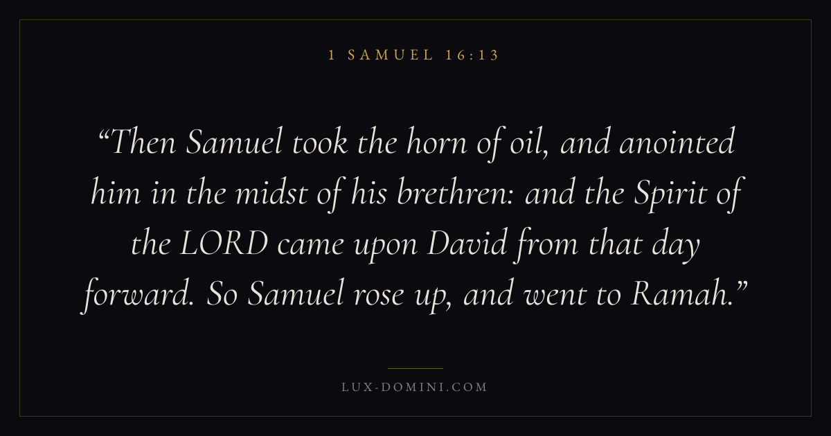 Then Samuel took the horn of oil, and anointed him in the midst of his brethren: and the Spirit of the LORD came upon David from that day forward. So Samuel rose up, and went to Ramah.