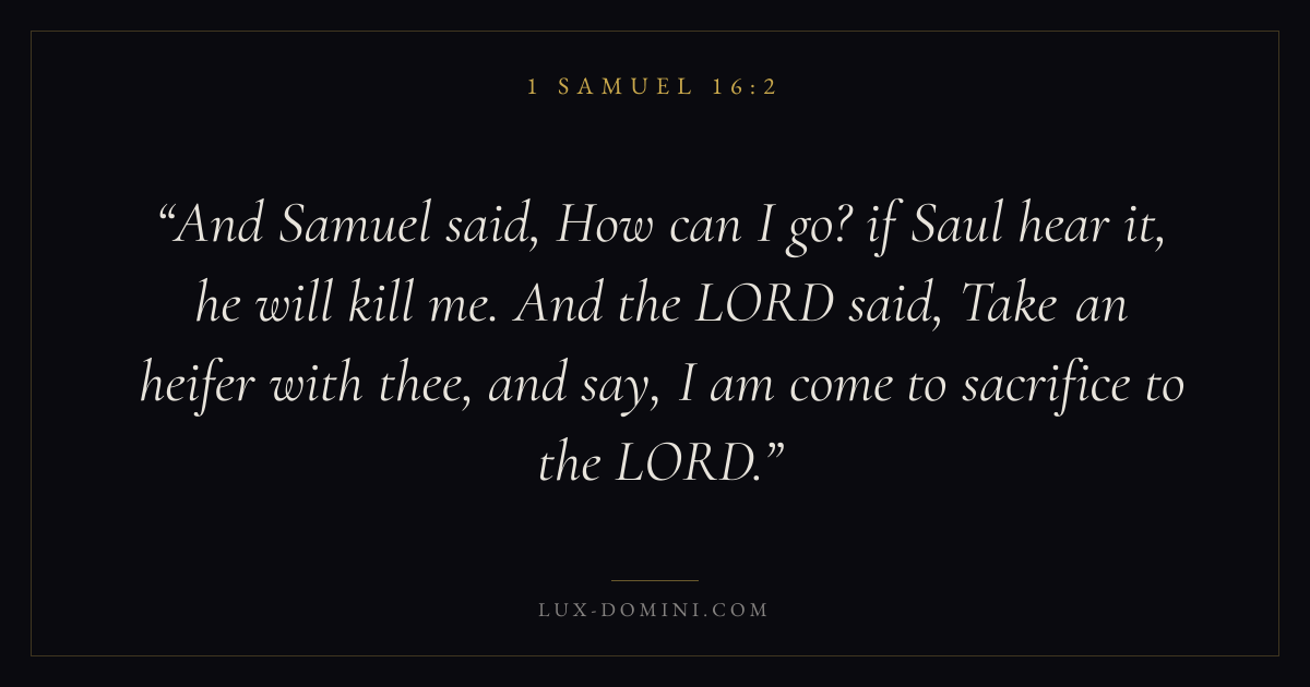 And Samuel said, How can I go? if Saul hear it, he will kill me. And the LORD said, Take an heifer with thee, and say, I am come to sacrifice to the LORD.
