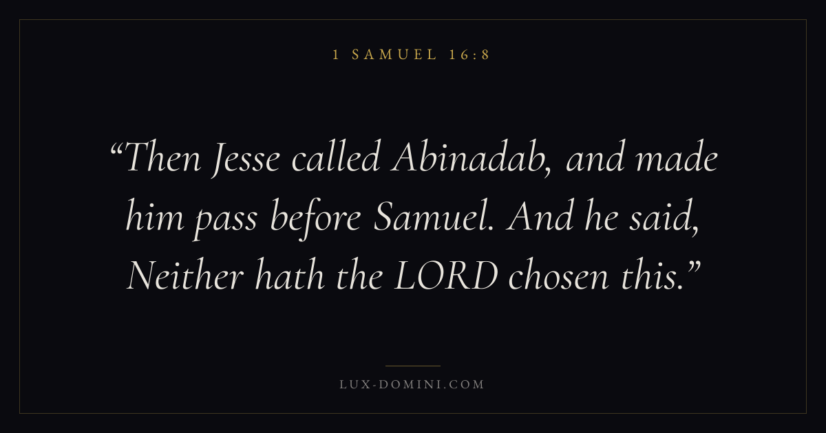 Then Jesse called Abinadab, and made him pass before Samuel. And he said, Neither hath the LORD chosen this.