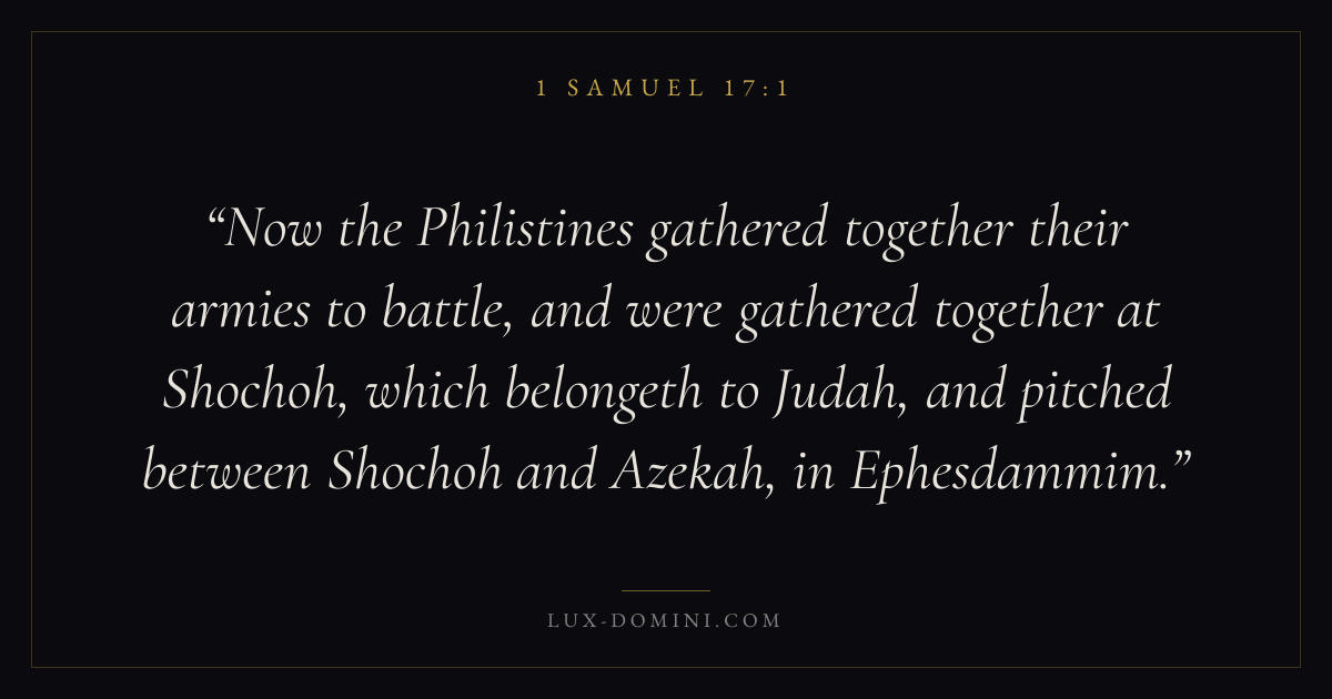 Now the Philistines gathered together their armies to battle, and were gathered together at Shochoh, which belongeth to Judah, and pitched between Shochoh and Azekah, in Ephesdammim.