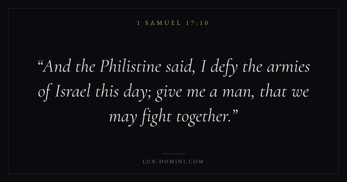 And the Philistine said, I defy the armies of Israel this day; give me a man, that we may fight together.