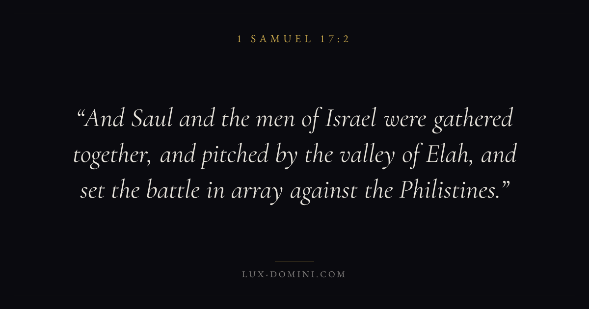And Saul and the men of Israel were gathered together, and pitched by the valley of Elah, and set the battle in array against the Philistines.