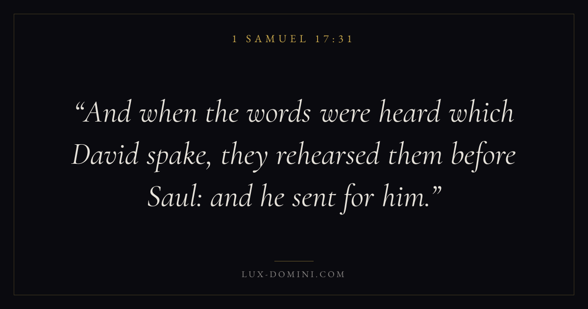 And when the words were heard which David spake, they rehearsed them before Saul: and he sent for him.