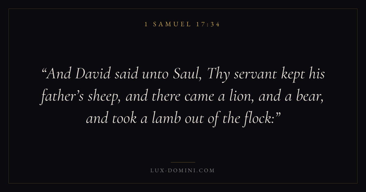 And David said unto Saul, Thy servant kept his father’s sheep, and there came a lion, and a bear, and took a lamb out of the flock: