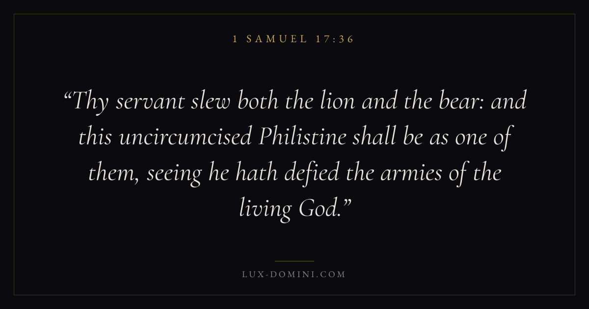 Thy servant slew both the lion and the bear: and this uncircumcised Philistine shall be as one of them, seeing he hath defied the armies of the living God.
