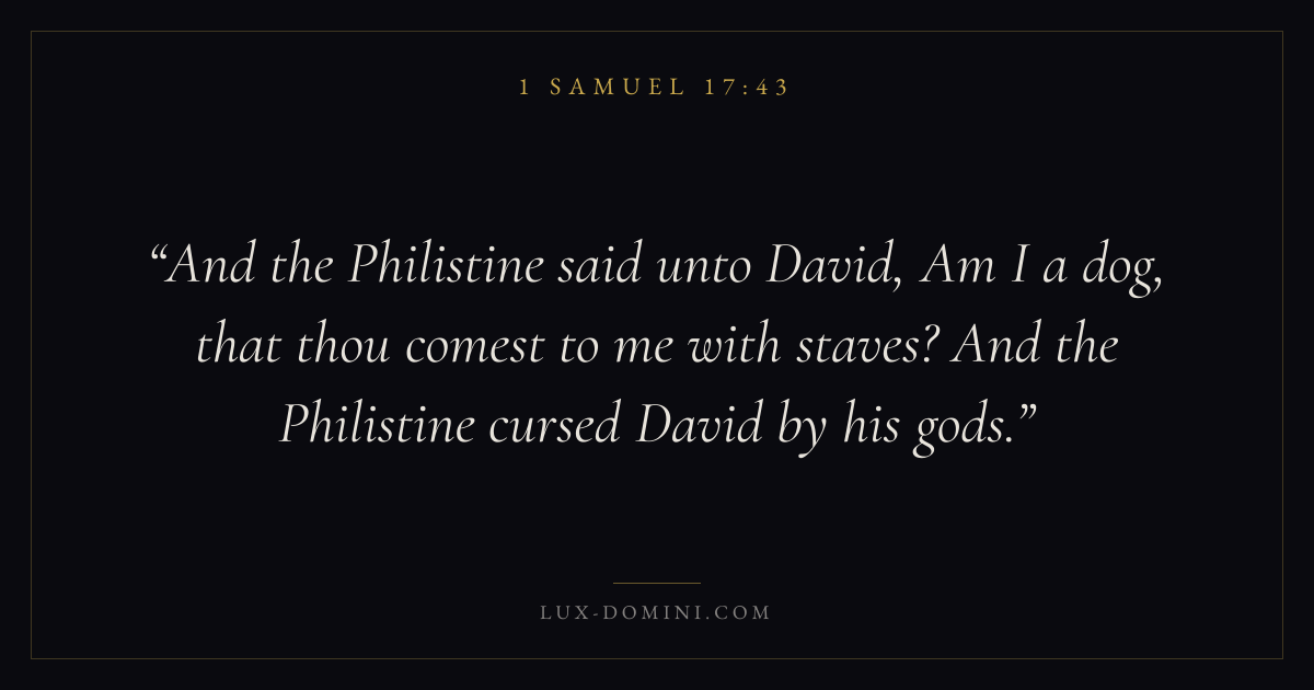 And the Philistine said unto David, Am I a dog, that thou comest to me with staves? And the Philistine cursed David by his gods.