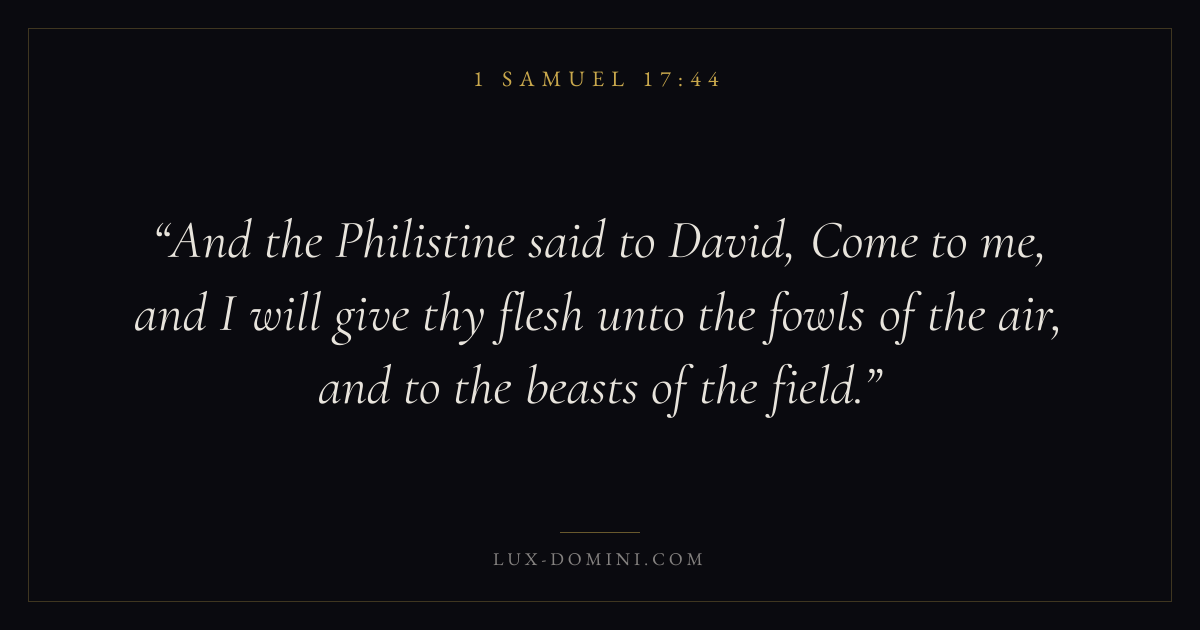 And the Philistine said to David, Come to me, and I will give thy flesh unto the fowls of the air, and to the beasts of the field.