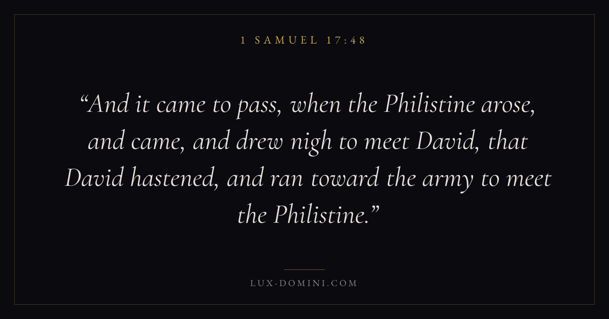 And it came to pass, when the Philistine arose, and came, and drew nigh to meet David, that David hastened, and ran toward the army to meet the Philistine.