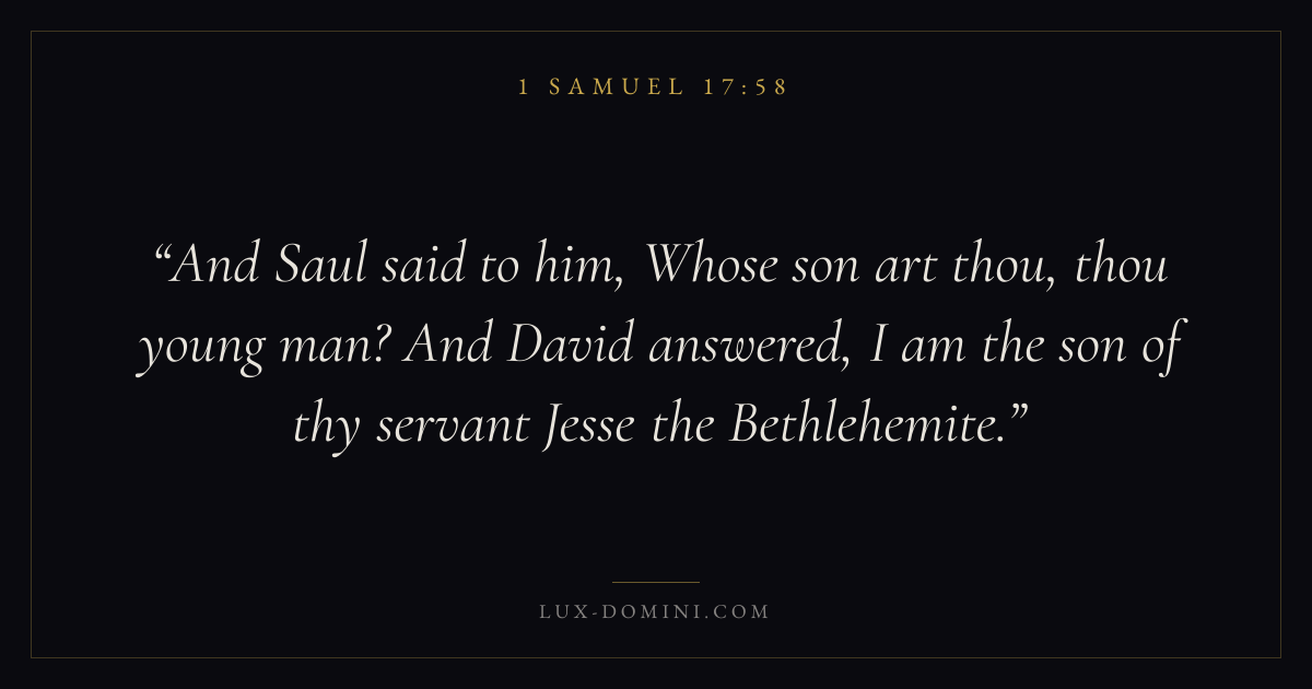 And Saul said to him, Whose son art thou, thou young man? And David answered, I am the son of thy servant Jesse the Bethlehemite.