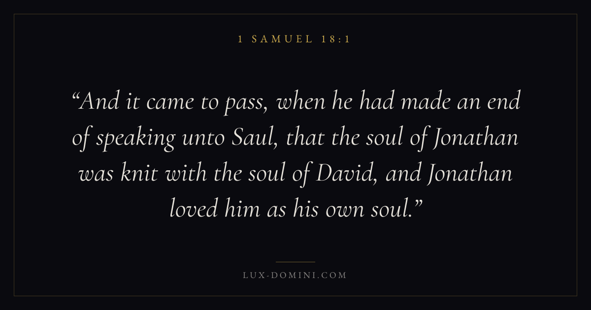 And it came to pass, when he had made an end of speaking unto Saul, that the soul of Jonathan was knit with the soul of David, and Jonathan loved him as his own soul.