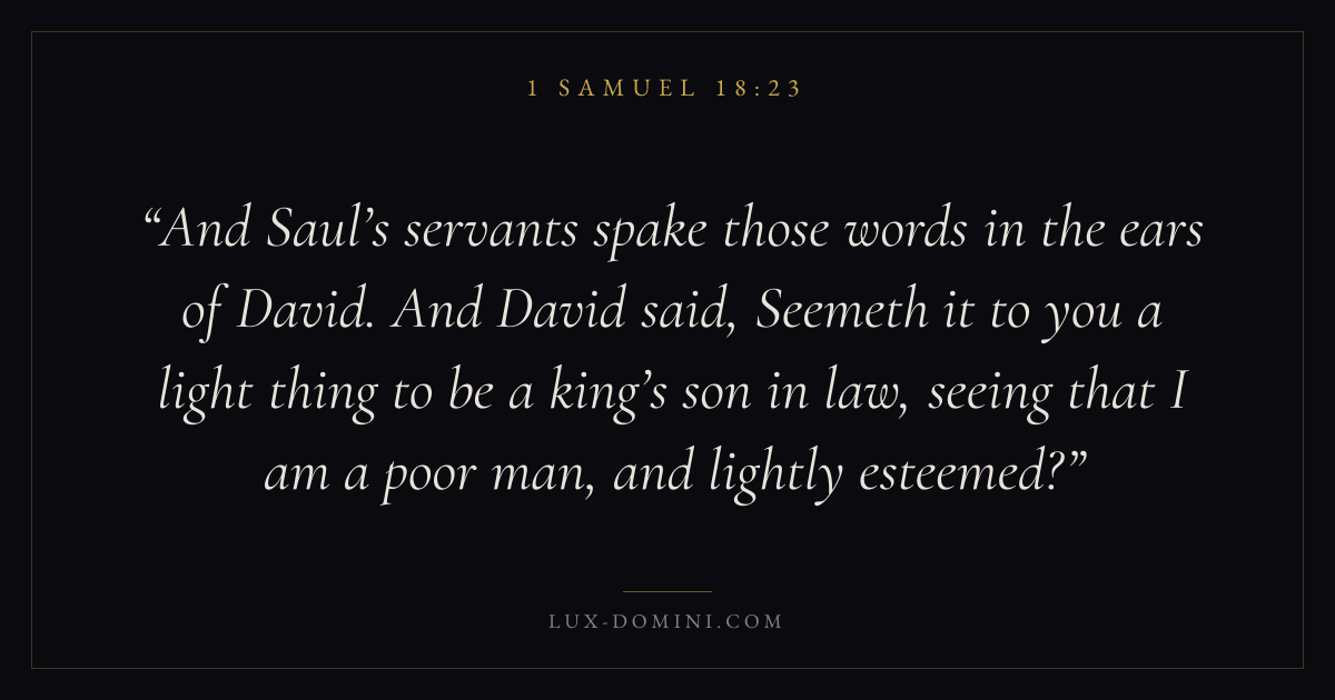 And Saul’s servants spake those words in the ears of David. And David said, Seemeth it to you a light thing to be a king’s son in law, seeing that I am a poor man, and lightly esteemed?