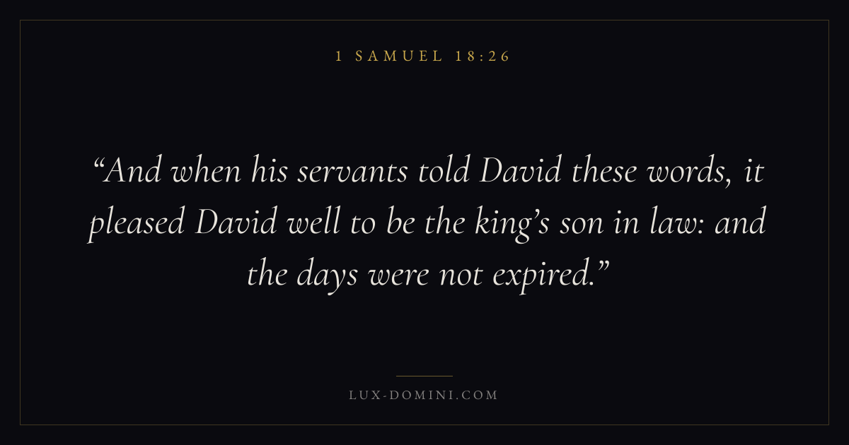 And when his servants told David these words, it pleased David well to be the king’s son in law: and the days were not expired.