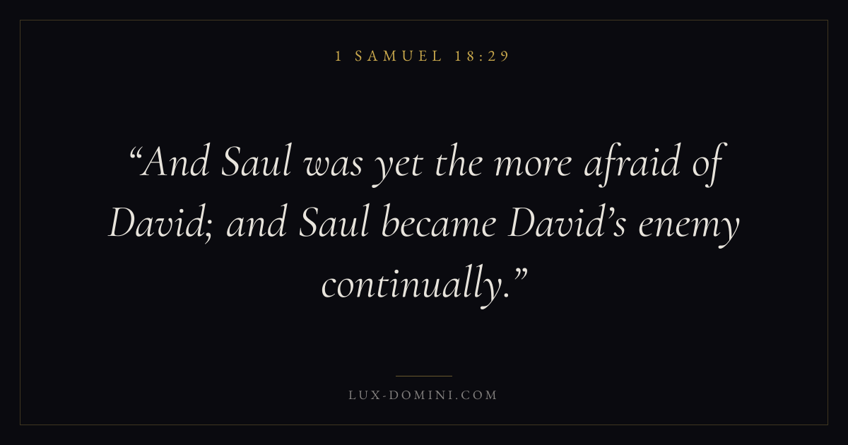 And Saul was yet the more afraid of David; and Saul became David’s enemy continually.