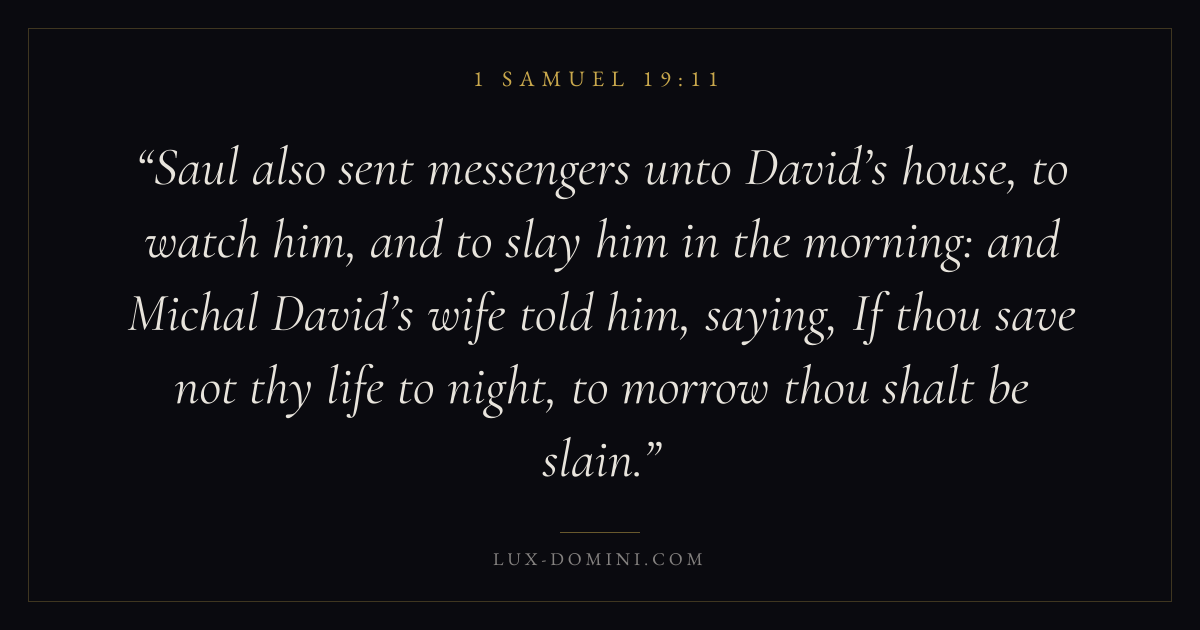Saul also sent messengers unto David’s house, to watch him, and to slay him in the morning: and Michal David’s wife told him, saying, If thou save not thy life to night, to morrow thou shalt be slain.