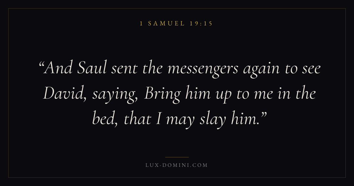 And Saul sent the messengers again to see David, saying, Bring him up to me in the bed, that I may slay him.