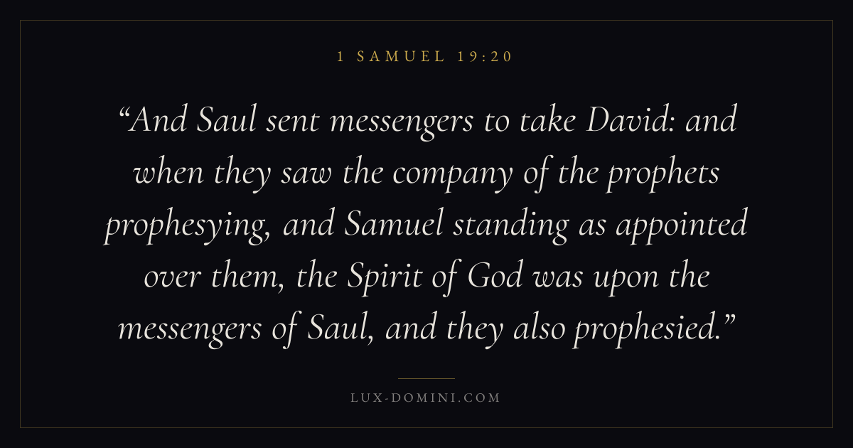 And Saul sent messengers to take David: and when they saw the company of the prophets prophesying, and Samuel standing as appointed over them, the Spirit of God was upon the messengers of Saul, and they also prophesied.
