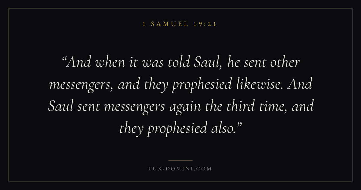 And when it was told Saul, he sent other messengers, and they prophesied likewise. And Saul sent messengers again the third time, and they prophesied also.