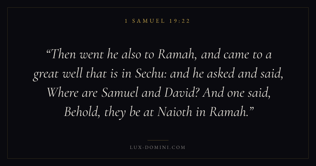 Then went he also to Ramah, and came to a great well that is in Sechu: and he asked and said, Where are Samuel and David? And one said, Behold, they be at Naioth in Ramah.