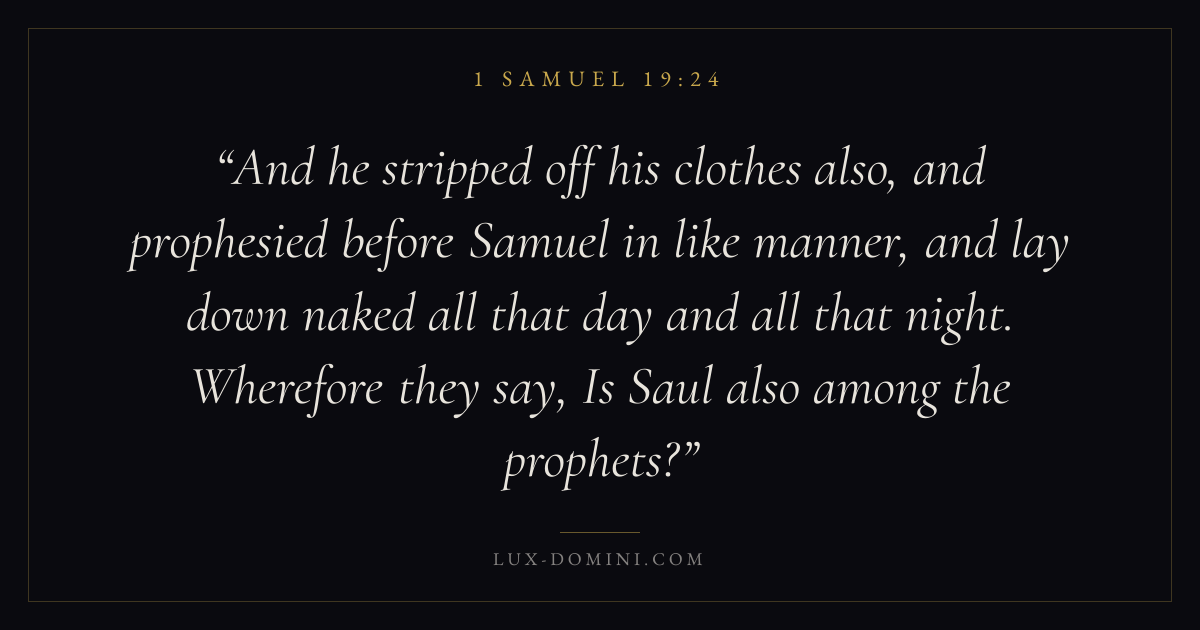 And he stripped off his clothes also, and prophesied before Samuel in like manner, and lay down naked all that day and all that night. Wherefore they say, Is Saul also among the prophets?