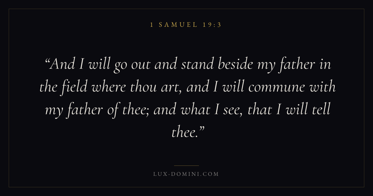 And I will go out and stand beside my father in the field where thou art, and I will commune with my father of thee; and what I see, that I will tell thee.