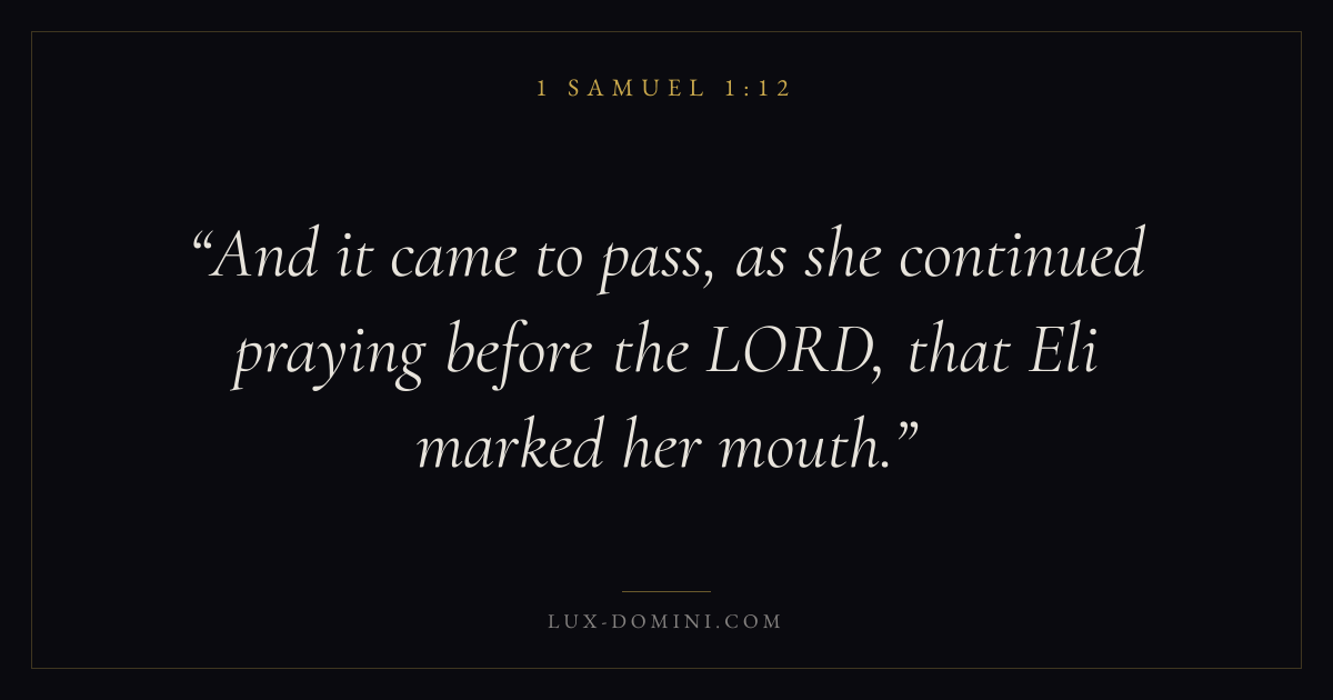 And it came to pass, as she continued praying before the LORD, that Eli marked her mouth.