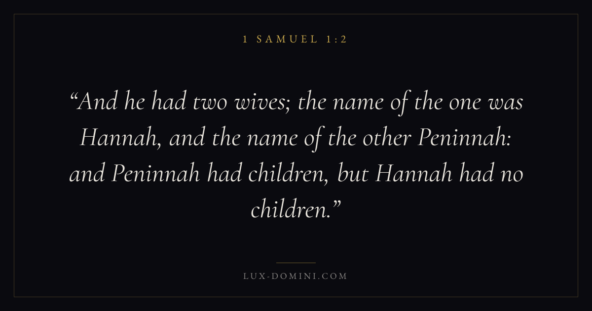 And he had two wives; the name of the one was Hannah, and the name of the other Peninnah: and Peninnah had children, but Hannah had no children.