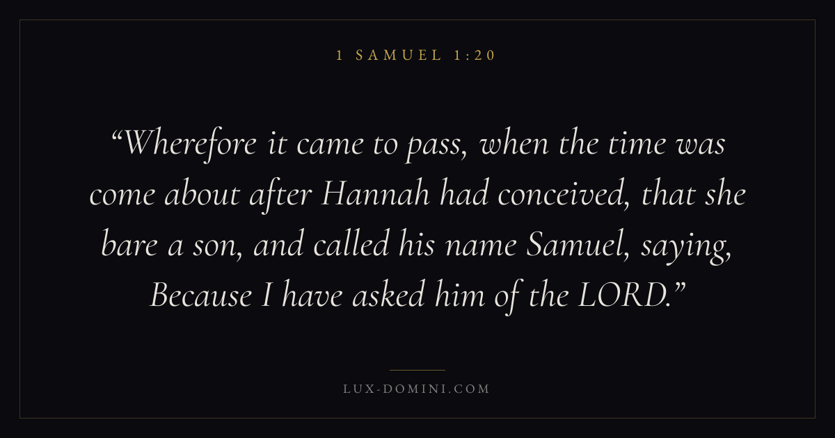 Wherefore it came to pass, when the time was come about after Hannah had conceived, that she bare a son, and called his name Samuel, saying, Because I have asked him of the LORD.