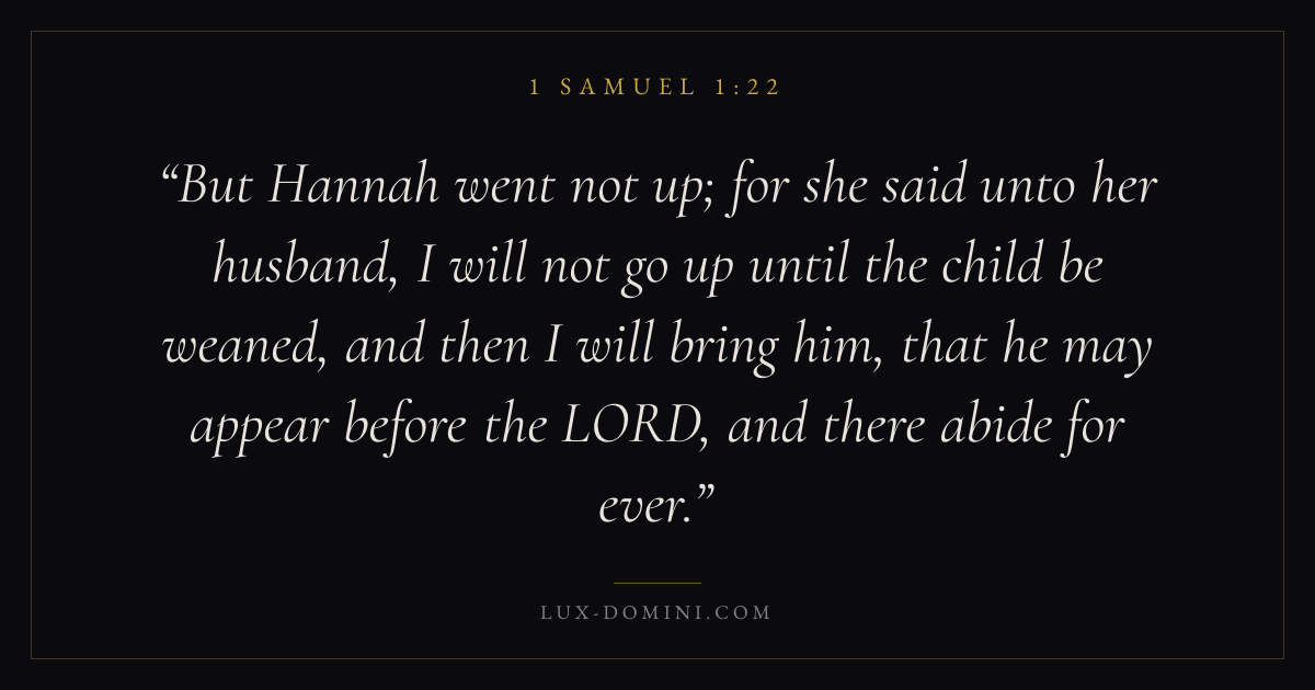 But Hannah went not up; for she said unto her husband, I will not go up until the child be weaned, and then I will bring him, that he may appear before the LORD, and there abide for ever.