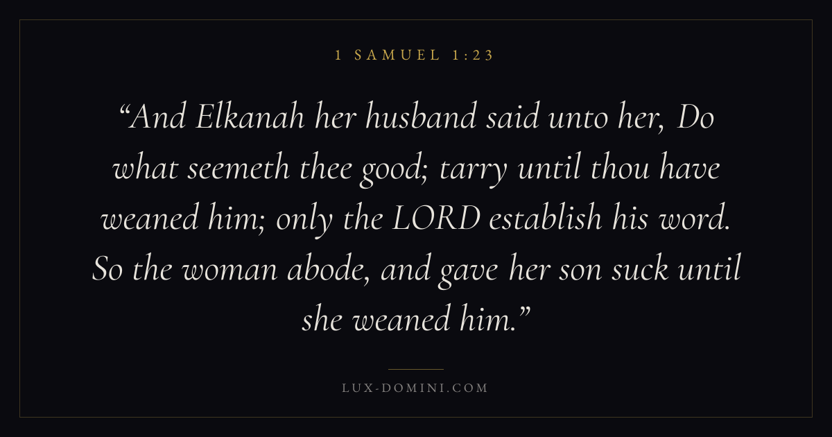 And Elkanah her husband said unto her, Do what seemeth thee good; tarry until thou have weaned him; only the LORD establish his word. So the woman abode, and gave her son suck until she weaned him.
