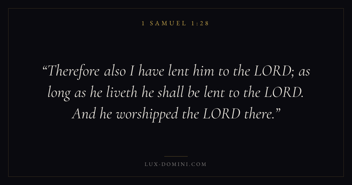 Therefore also I have lent him to the LORD; as long as he liveth he shall be lent to the LORD. And he worshipped the LORD there.