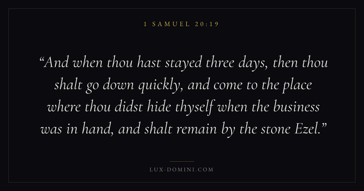 And when thou hast stayed three days, then thou shalt go down quickly, and come to the place where thou didst hide thyself when the business was in hand, and shalt remain by the stone Ezel.