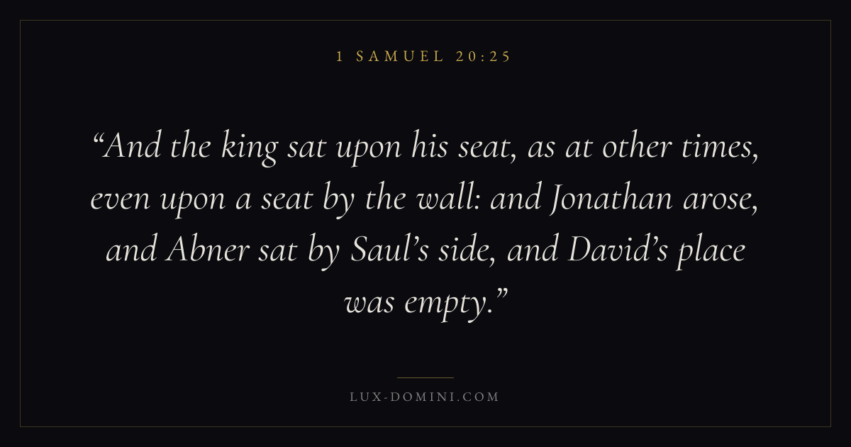 And the king sat upon his seat, as at other times, even upon a seat by the wall: and Jonathan arose, and Abner sat by Saul’s side, and David’s place was empty.