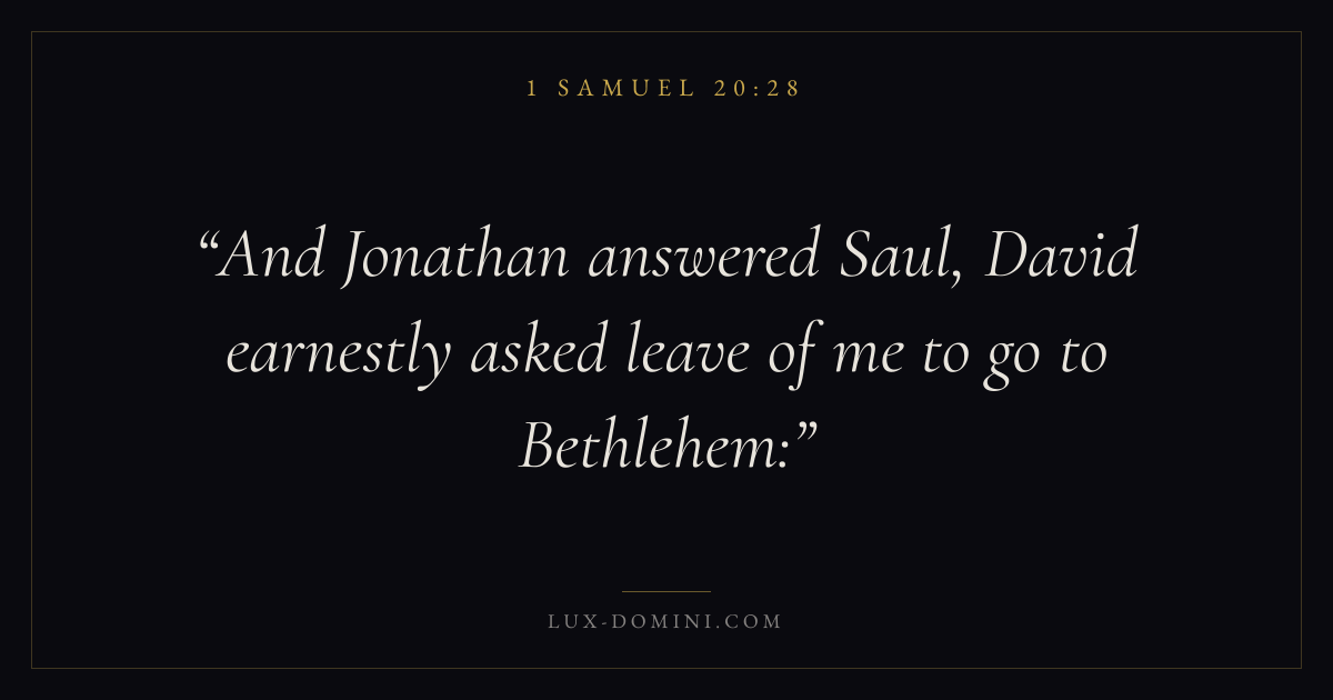 And Jonathan answered Saul, David earnestly asked leave of me to go to Bethlehem: