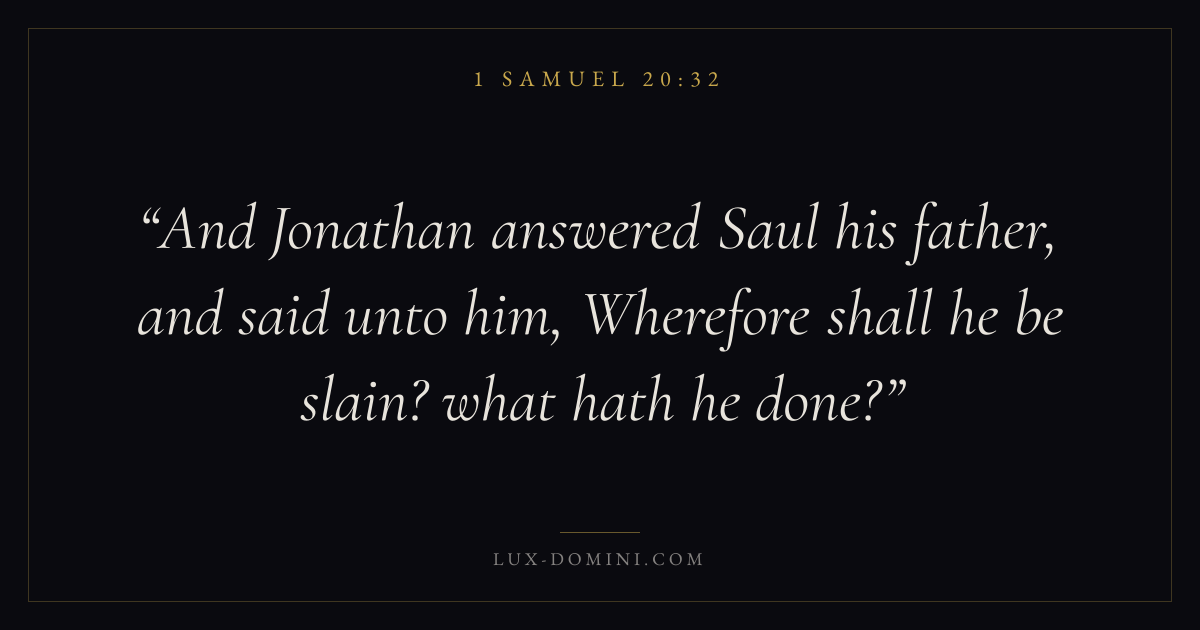 And Jonathan answered Saul his father, and said unto him, Wherefore shall he be slain? what hath he done?