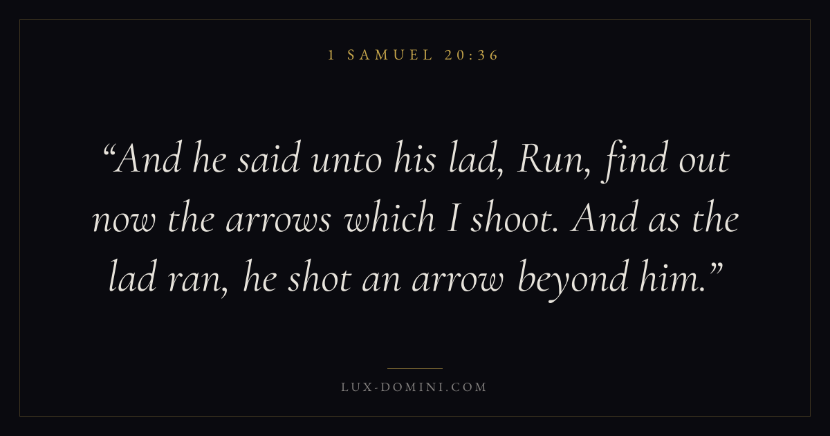 And he said unto his lad, Run, find out now the arrows which I shoot. And as the lad ran, he shot an arrow beyond him.