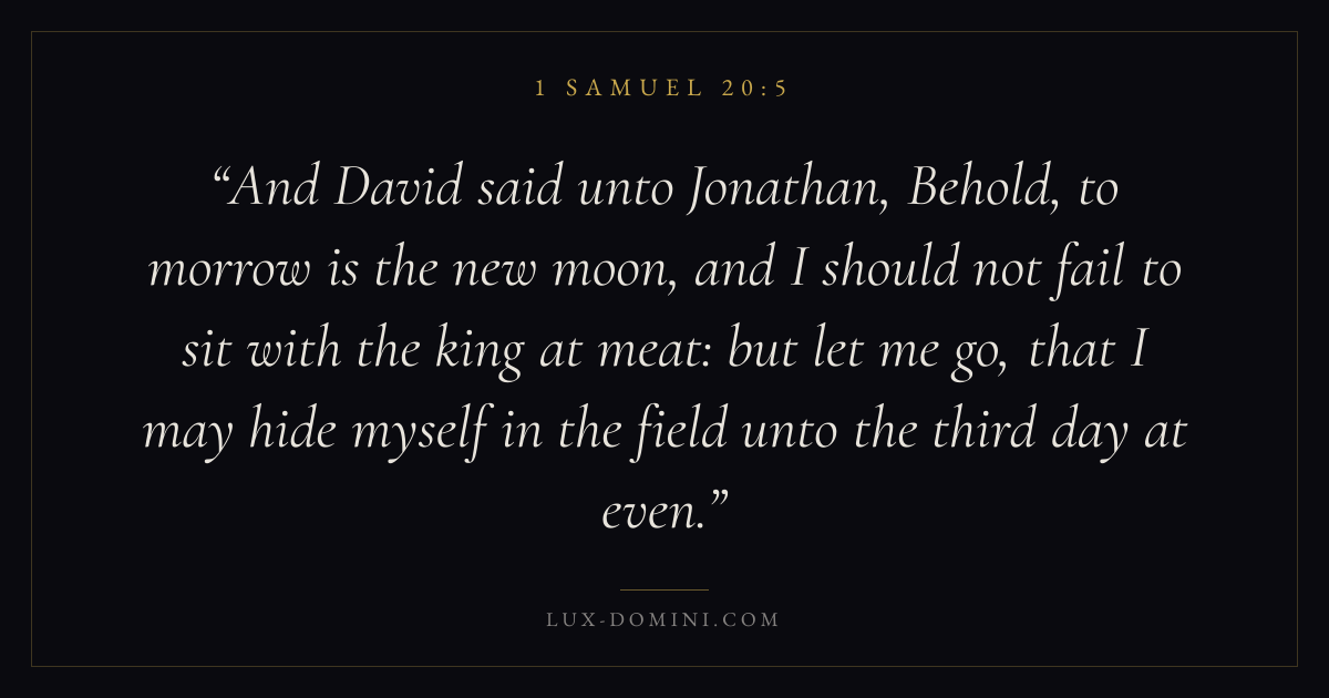 And David said unto Jonathan, Behold, to morrow is the new moon, and I should not fail to sit with the king at meat: but let me go, that I may hide myself in the field unto the third day at even.