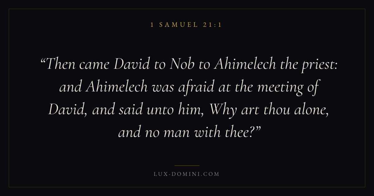 Then came David to Nob to Ahimelech the priest: and Ahimelech was afraid at the meeting of David, and said unto him, Why art thou alone, and no man with thee?