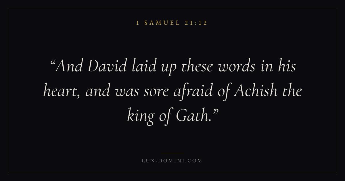 And David laid up these words in his heart, and was sore afraid of Achish the king of Gath.
