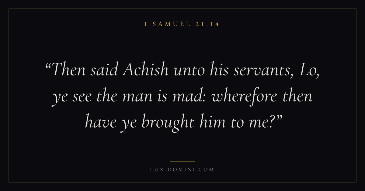 Then said Achish unto his servants, Lo, ye see the man is mad: wherefore then have ye brought him to me?