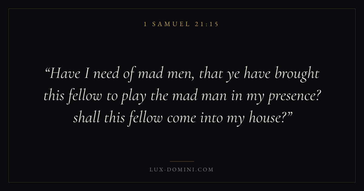 Have I need of mad men, that ye have brought this fellow to play the mad man in my presence? shall this fellow come into my house?