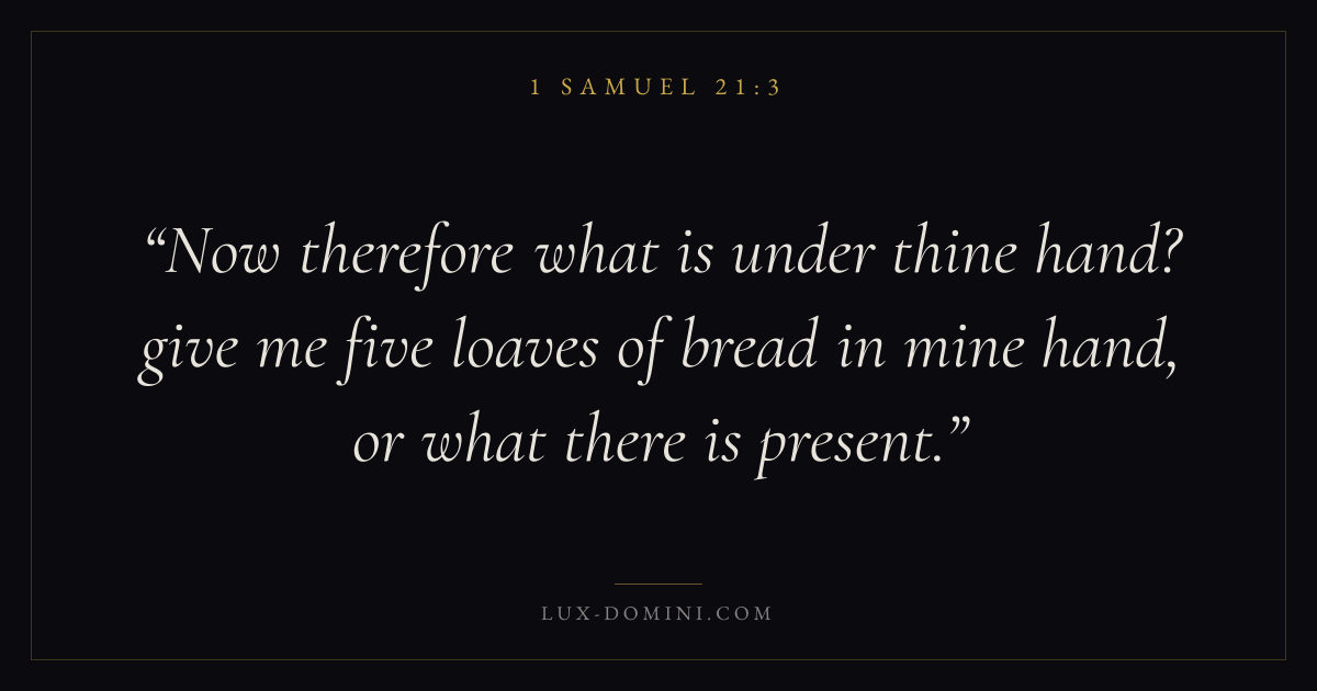 Now therefore what is under thine hand? give me five loaves of bread in mine hand, or what there is present.