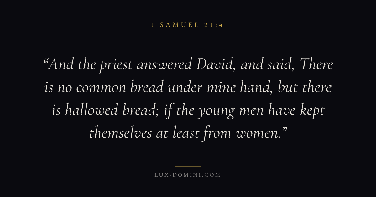 And the priest answered David, and said, There is no common bread under mine hand, but there is hallowed bread; if the young men have kept themselves at least from women.