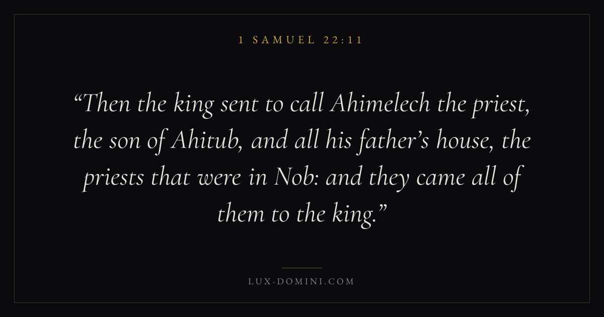 Then the king sent to call Ahimelech the priest, the son of Ahitub, and all his father’s house, the priests that were in Nob: and they came all of them to the king.