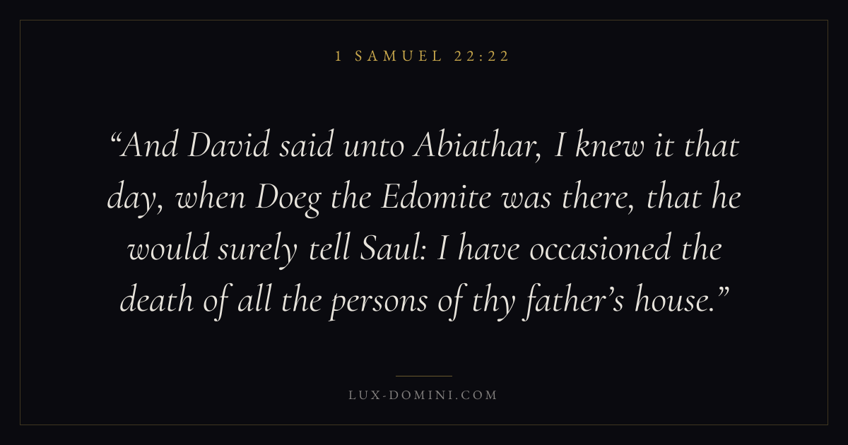 And David said unto Abiathar, I knew it that day, when Doeg the Edomite was there, that he would surely tell Saul: I have occasioned the death of all the persons of thy father’s house.