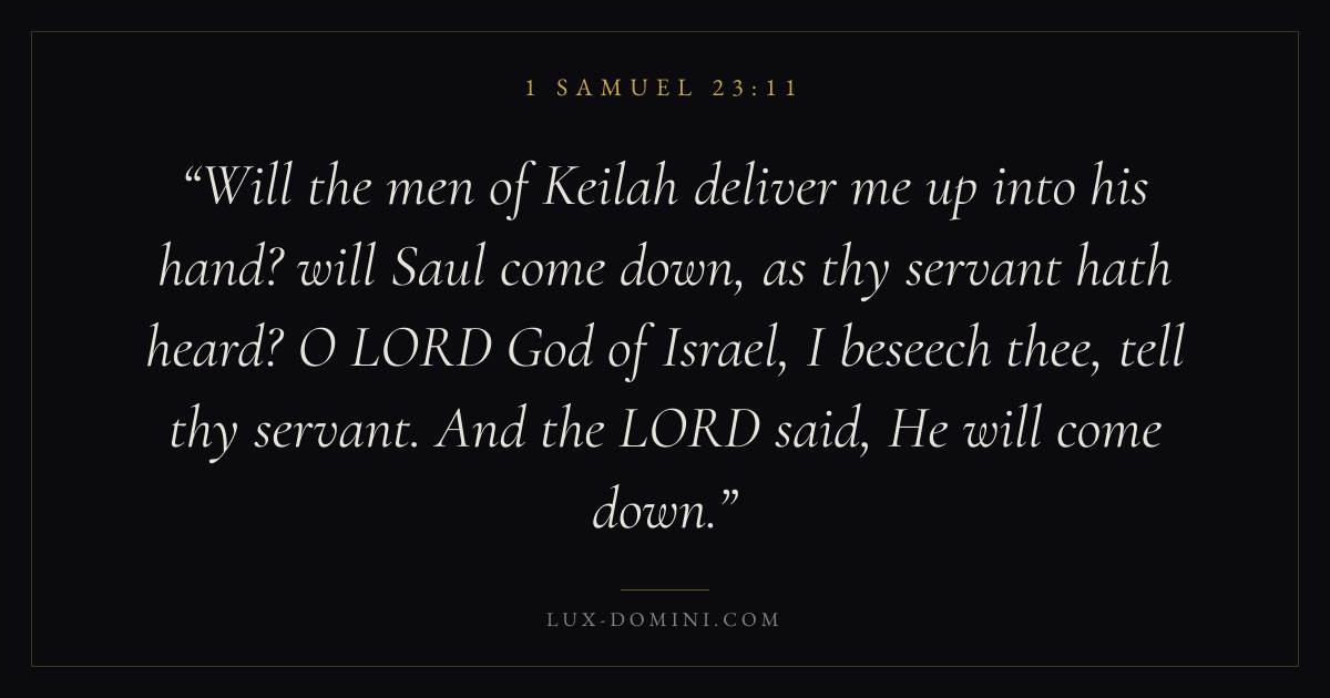 Will the men of Keilah deliver me up into his hand? will Saul come down, as thy servant hath heard? O LORD God of Israel, I beseech thee, tell thy servant. And the LORD said, He will come down.